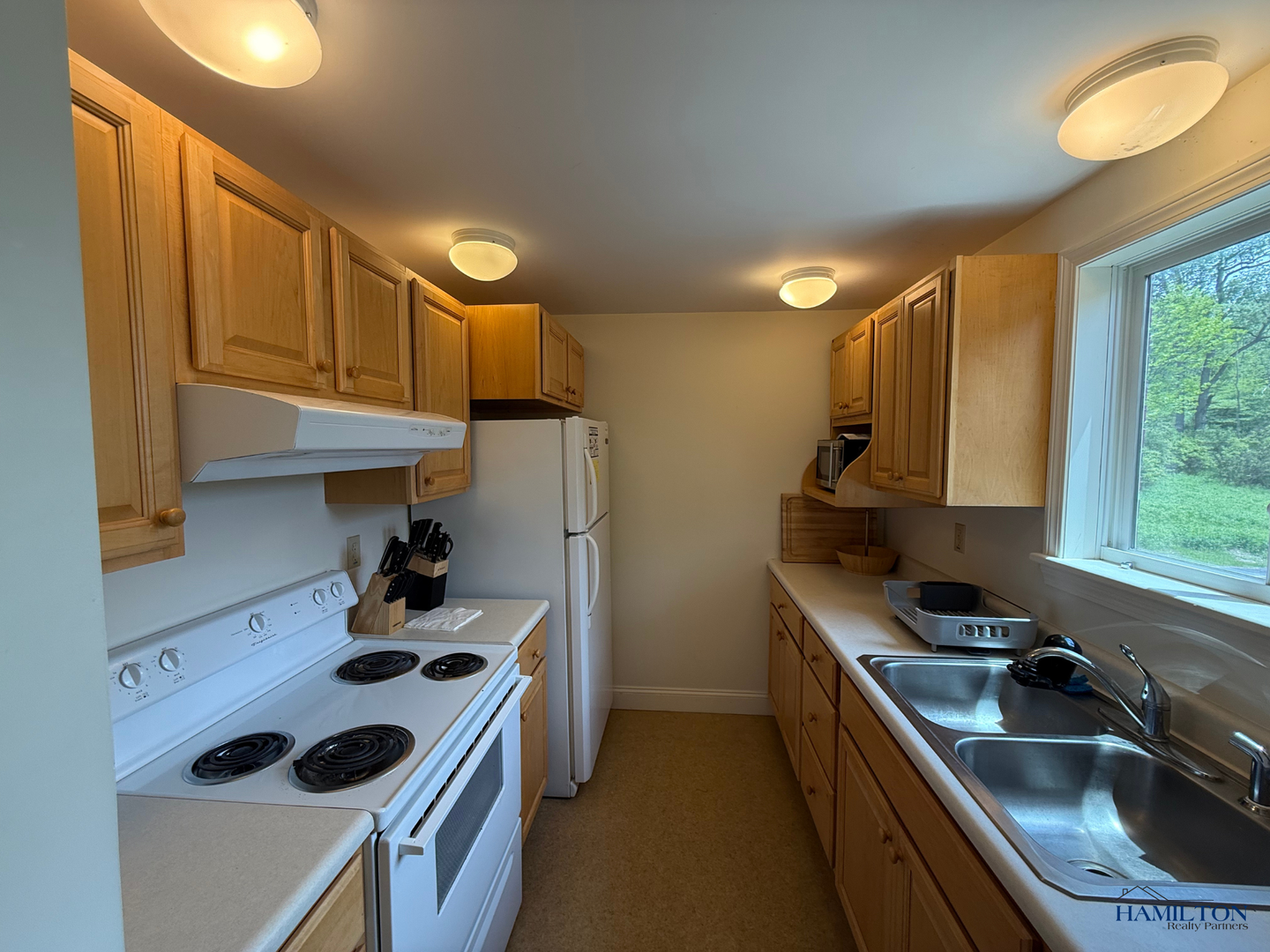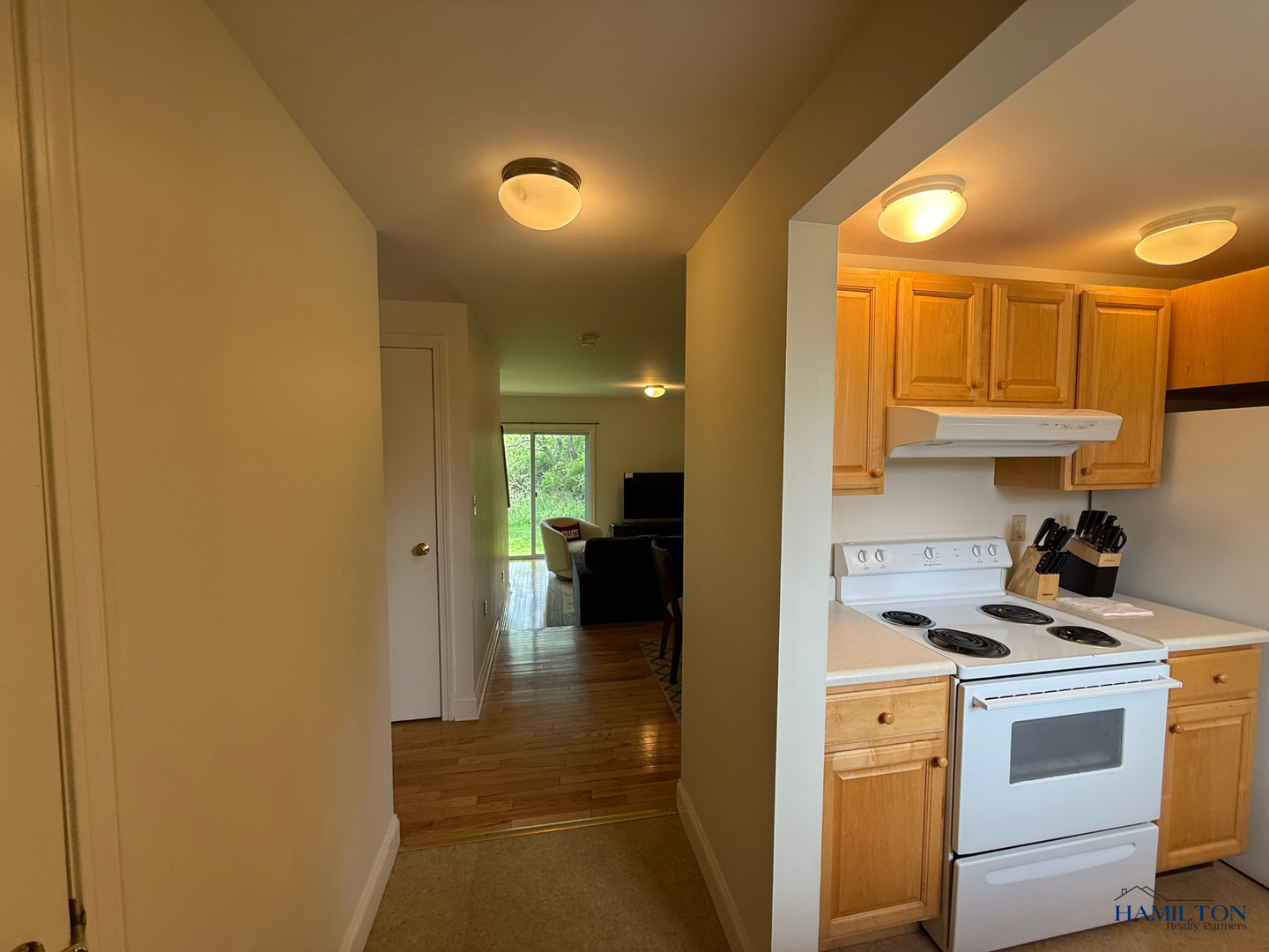 This town-house style apartment is located on the edge of the village of Hamilton. There are 2 bedrooms, 1.5 baths, galley style kitchen, kitchen/dining room combo and a full basement for storage. There is a shared laundry room on premises. (coin-operated).